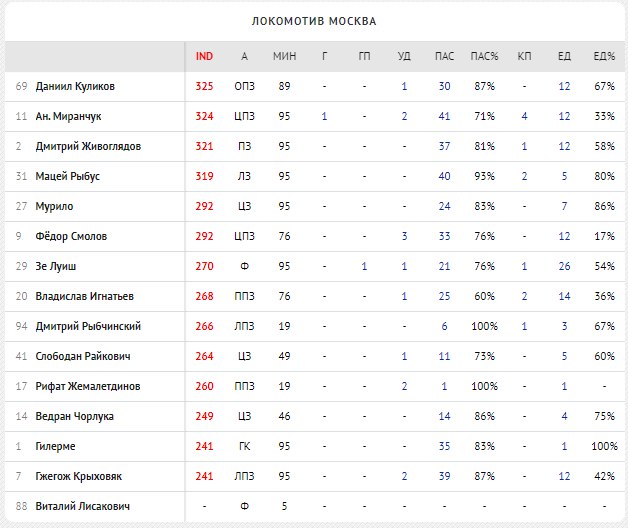 В составе "Локо" отмечу опорника Куликова, вот уж кто поразил и понравился. Парень успевал везде: сделал 2 отбора, 9 перехватов, 9 подборов и 4 обводки. Отдал 30 передач (87 % точности - один из лучших в команде). Хороший парень, надо присмотреться.