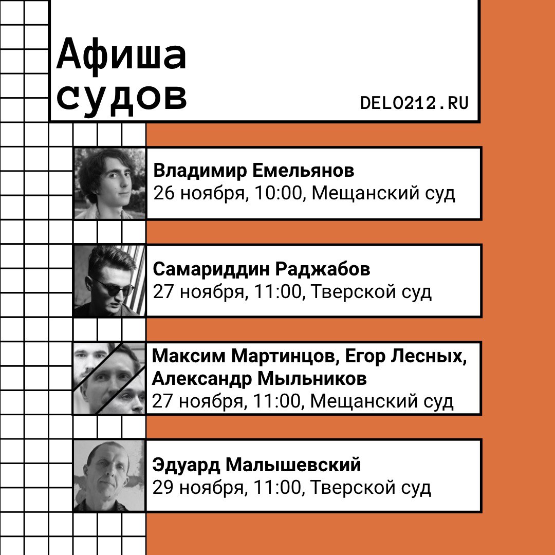 1. Во вторник, 26 ноября, дело Владимира Емельянова будет рассмотрено по существу