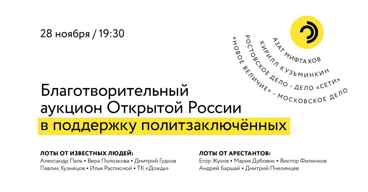 28 ноября «Открытая Россия» проведет благотворительный аукцион, все вырученные средства с которого пойдут на поддержку фигурантов политических дел и их семей.