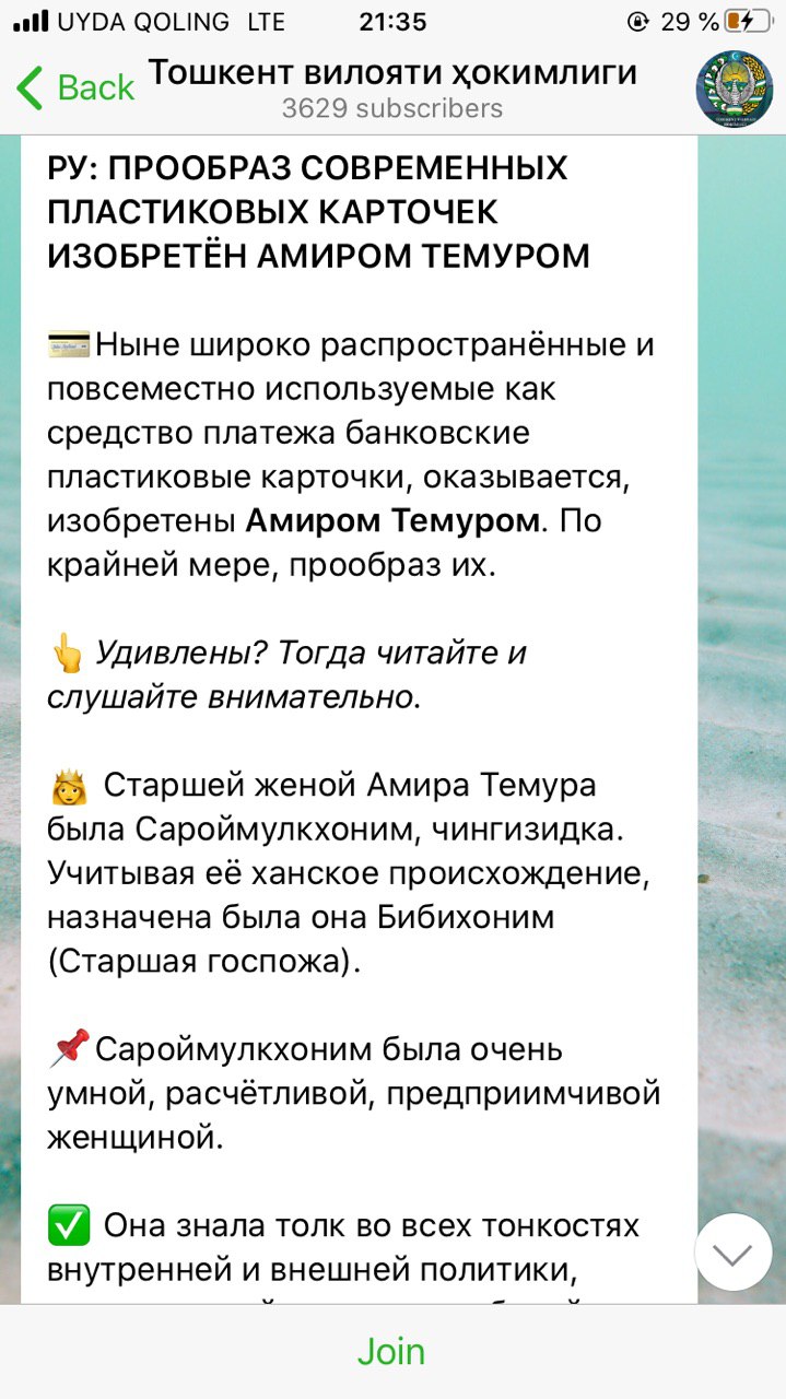 Город говорит (@govorit_tashkent) - авторский канал об истории, новостях, личный взгляд на события в стране.