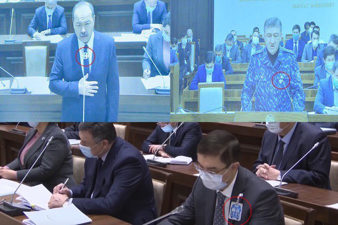 А теперь посмотрим на фотографию пресс-службы президента, с видеоселекторного совещания от 8 апреля, где премьер-министр страны, Абдула Арипов, а также глава МВД Пулат Бабажанов, находятся на своих рабочих местах, но почему-то без маски.
