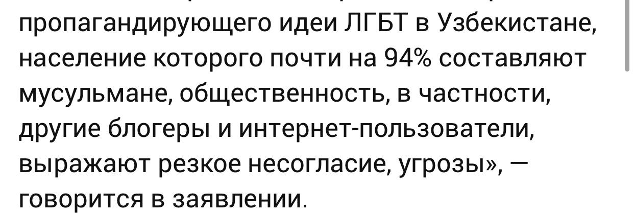 Откроем закон о СМИ, статью 4: «В Республике Узбекистан цензура средств массовой информации не допускается». Мы можем считать призыв избегать темы ради спокойствия, разновидностью цензуры? Значит ли это, что государство планирует ввести наказание и репрессии за обсуждение темы ЛГБТ? И что будет, если я, HOOK, другие блогеры продолжат об этом говорить? Значит ли то, что если и мне тоже сломают ноги, я буду сама виновата?