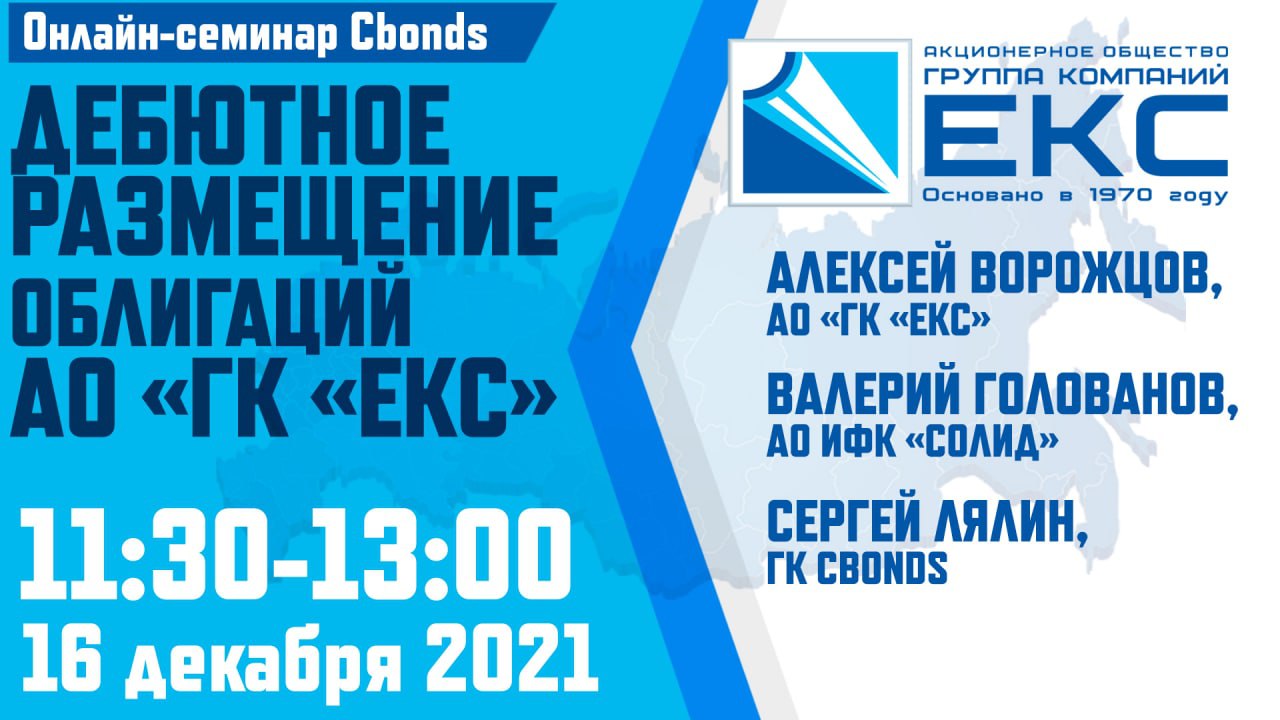 🏢Онлайн-семинар «Дебютное размещение облигаций АО «ГК «ЕКС» – 16 декабря в 11:30 (мск)
