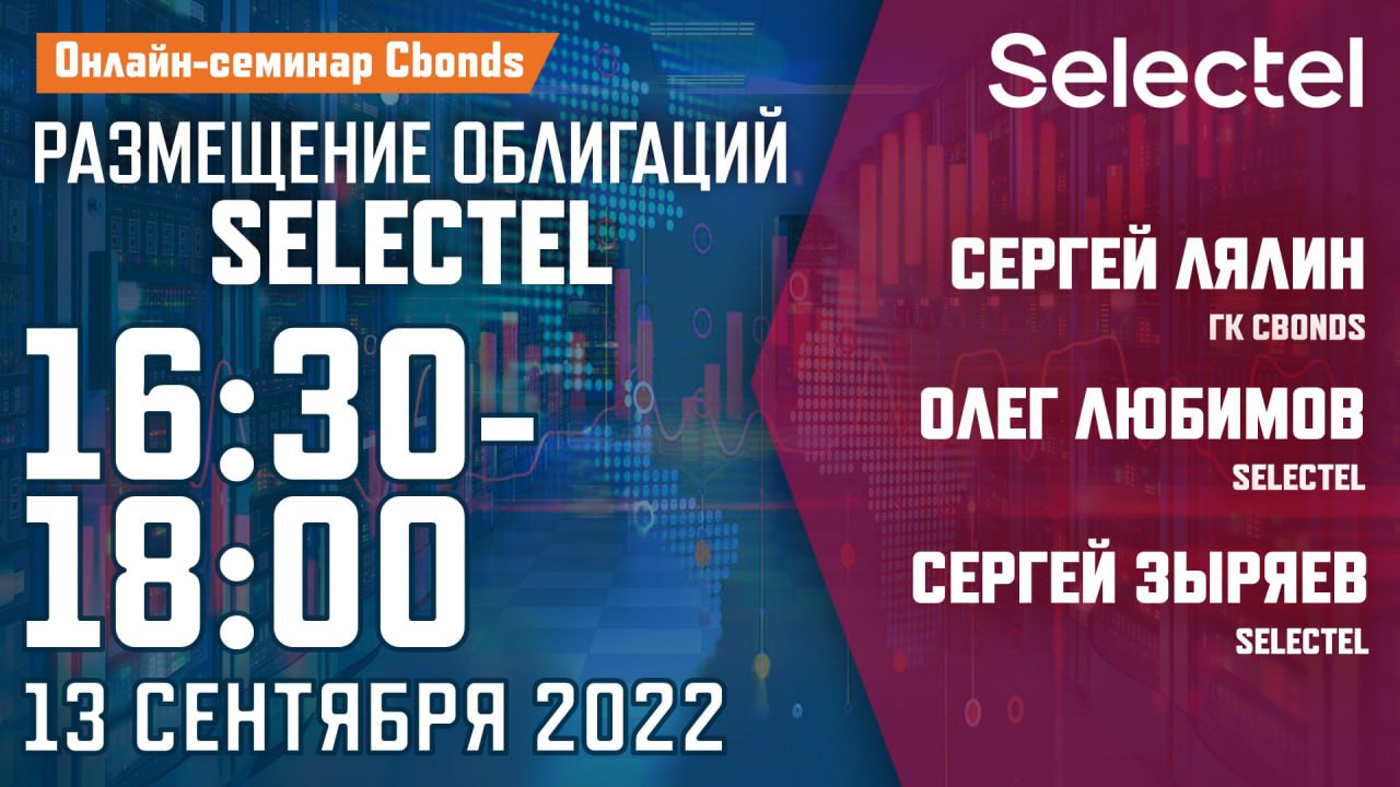💻Уже сегодня в 16:30 (мск): «Размещение облигаций Selectel» – онлайн-семинар Cbonds