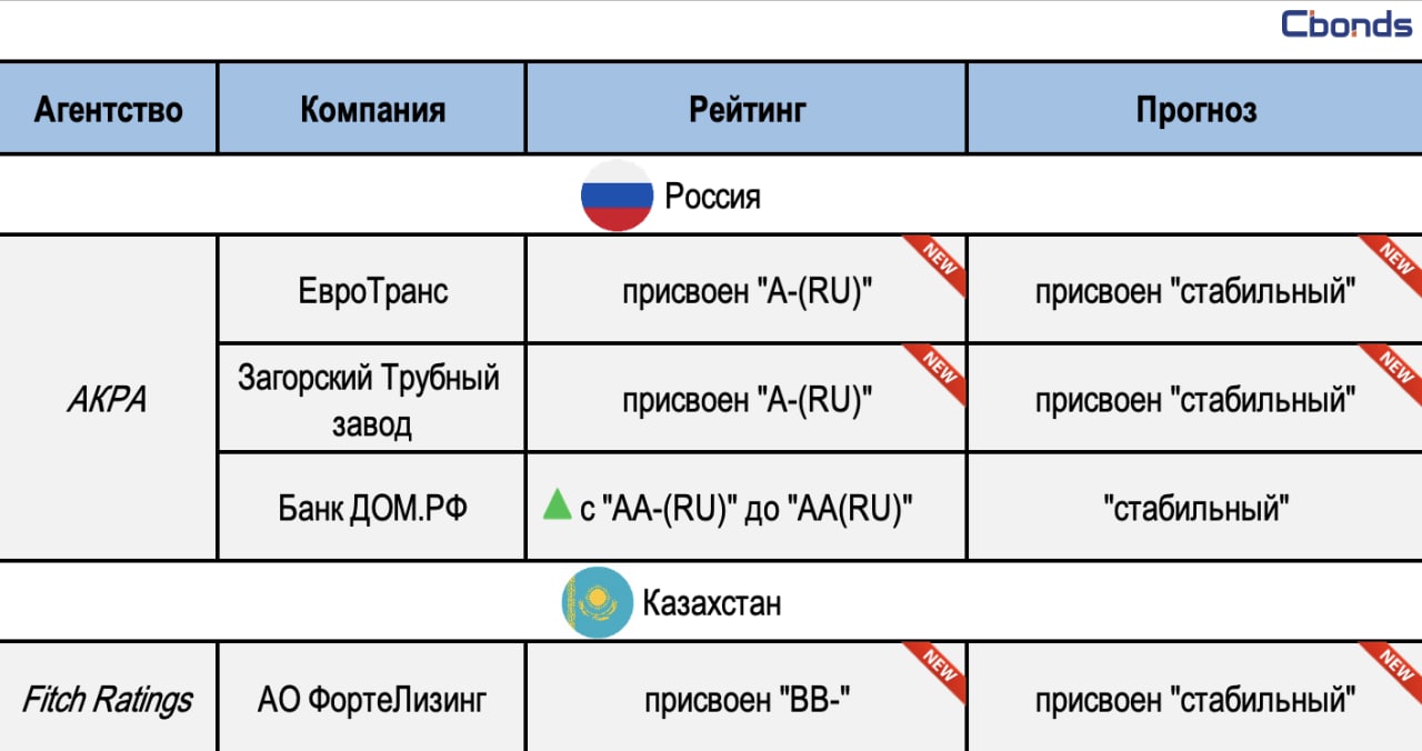 🗂Присвоение / Изменение рейтинга или прогнозов в странах СНГ за 10 октября