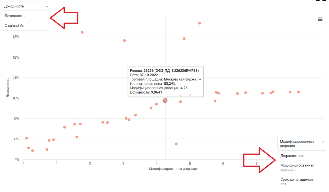 Также в таблице с результатами поиска добавлены столбцы «Модифицированная дюрация», «Срок до погашения» и «G-spread».