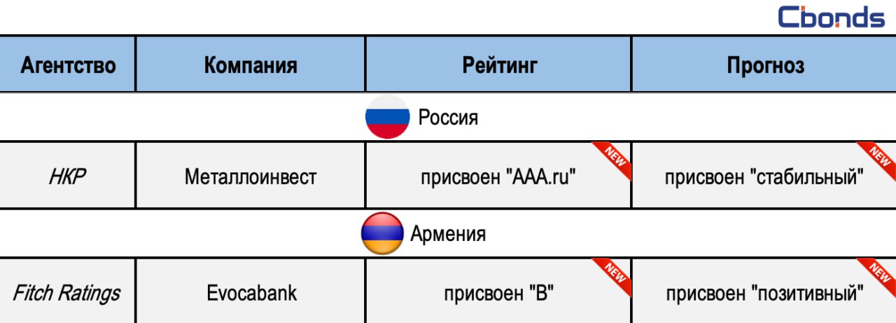 🗂Присвоение / Изменение рейтинга или прогнозов в странах СНГ за 16 мая