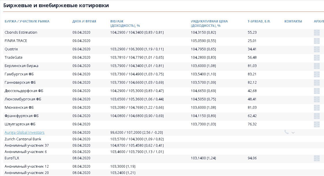 ⚡️На сайте ежедневно представлены цены BID, ASK и Last по более чем 6 000 инструментов. На бирже обращаются еврооблигации развитых и развивающихся рынков.