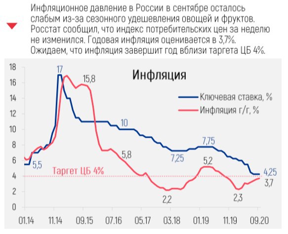 • Инфляция к 28 сентября оценивается в 3,7% г/г, ослабление рубля повысило инфляционные ожидания и вероятность сохранения ставки ЦБ в октябре.