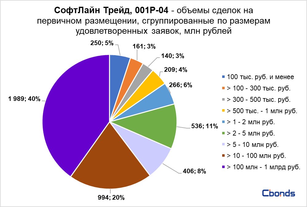 Cделки размером более 100 млн - 1 млрд рублей составили 40% от объема размещения, сделки объемом более 10 млн - 100 млн рублей – 20%.