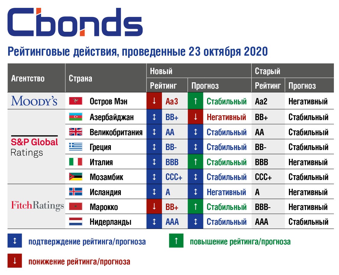 🔹S&P Global Ratings подтвердило рейтинги Великобритании, Греции, Италии и Мозамбика со стабильным прогнозом, рейтинг Азербайджана с негативным прогнозом.