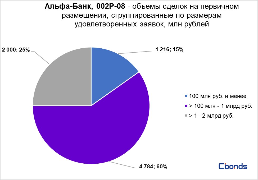 Cделки размером более 100 млн - 1 млрд рублей составили 60% от объема размещения, сделки объемом более 1 млрд - 2 млрд рублей – 25%.