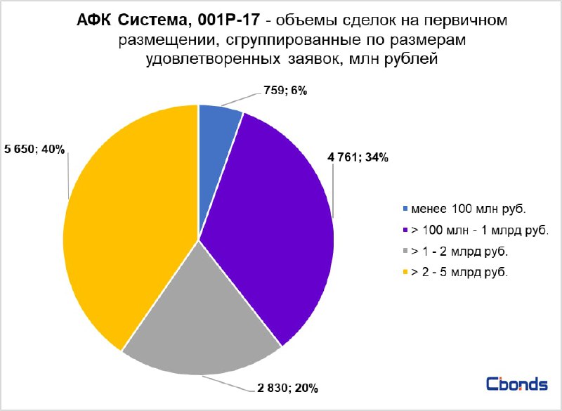 Cделки размером от 2 - 5 млрд руб. составили 40% от объема размещения, а сделки размером от 100 млн - 1 млрд рублей составили 34% от общего объема.
