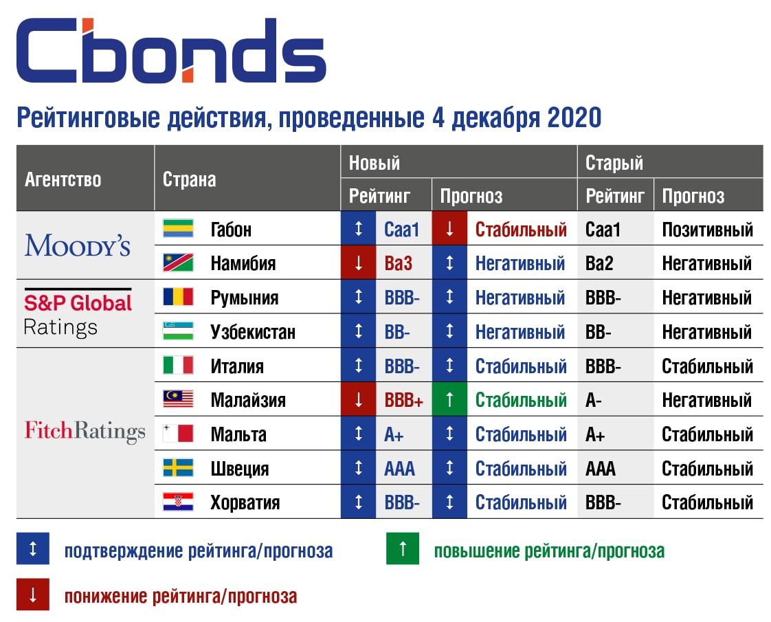 В пятницу, 4 декабря, были проведены следующие рейтинговые действия: