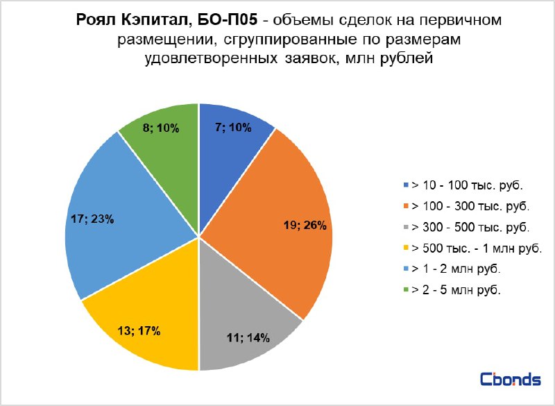 Cделки размером от 100 до 300 тыс. руб. составили 26% от объема размещения, на втором месте сделки размером от 1 до 2 млн руб., занявшие 23% от общего объема.