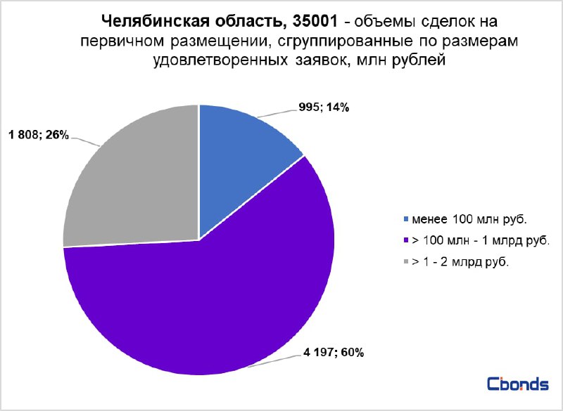 Cделки размером от 100 млн - 1 млрд руб. составили 73% от объема размещения, самая крупная сделка размером 1.5 млрд рублей составила 15% от общего объема.