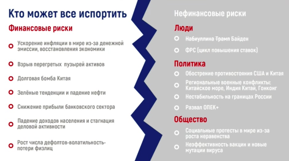 "2020 год отличается огромной дивергенцией между экономикой и рынками, которая во многом обусловлена принимаемыми мерами. ... Ожидаемая инфляции находится на высоких относительно ситуации отметках. С одной стороны, сейчас прекрасное время для заемщиков, с другой, для инвесторов – худшее время, потому что фактически все базовые активы будут оставаться ниже уровня инфляции.