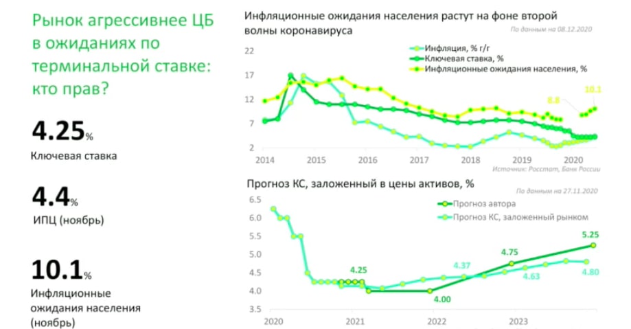 📉 Егор ожидает незначительного снижения ключевой ставки до 4.0% в 2021 году.