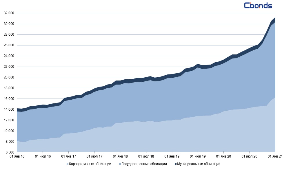 ⚡️🇷🇺 Рынок корпоративных облигаций России за декабрь вырос на 3.78%, общий объем рынка внутренних облигаций по итогам 2020 года составил 31.249 трлн рублей
