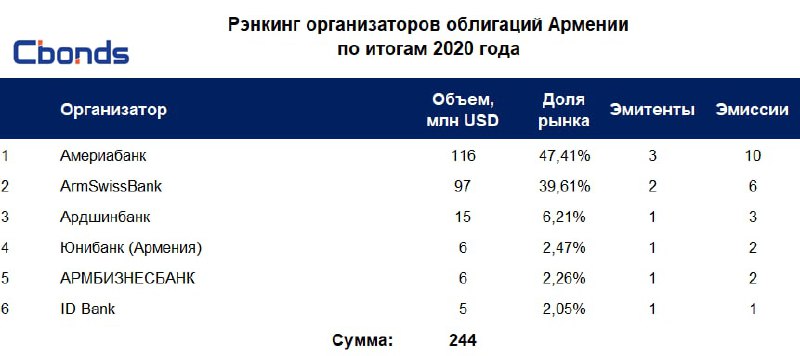 🇦🇲🏆 Рэнкинг организаторов облигаций Армении по итогам 2020 года