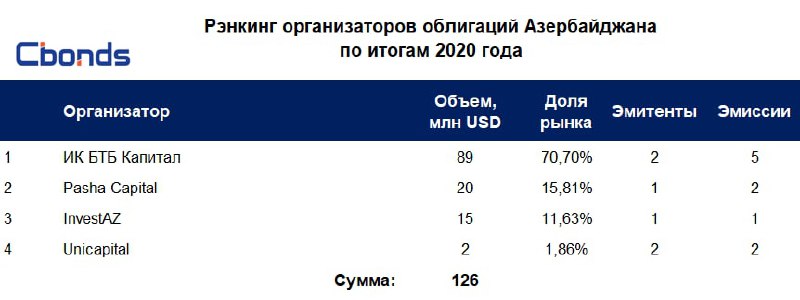 🇦🇿 🔝Рэнкинг организаторов облигаций Азербайджана по итогам 2020 года