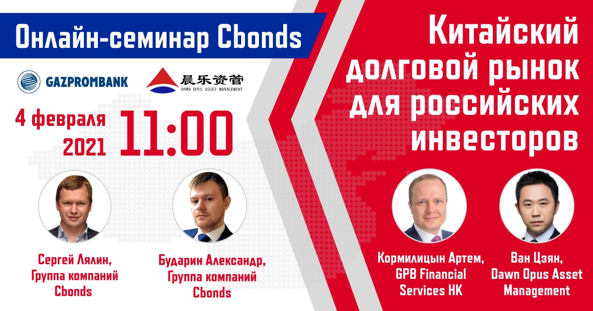 4 февраля 2021 г. в 11:00 эксперты обсудят сложившуюся макроситуацию в Китае, обстановку на рынке внутренних облигаций и еврооблигаций Китая; поделятся опытом инвестирования, расскажут об интересных сделках и явлениях на рынке.