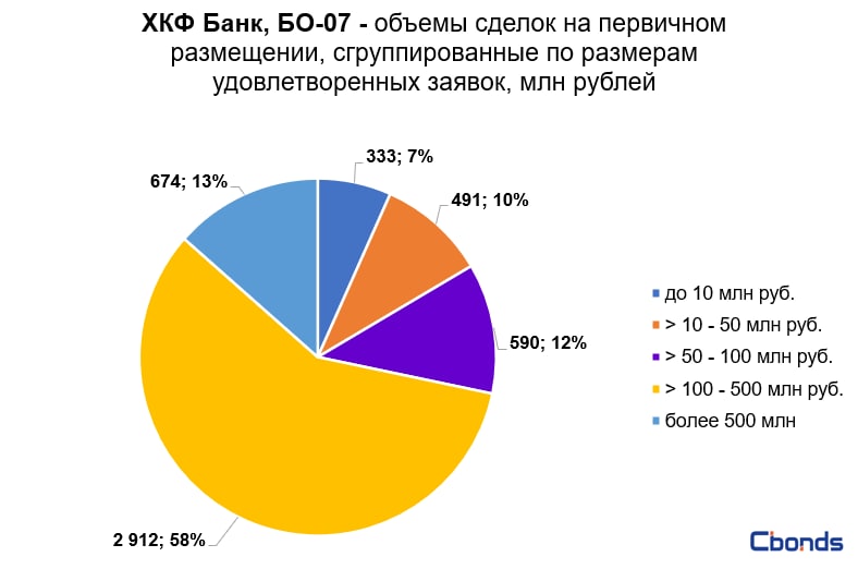 Наибольшую долю в структуре размещения (58%) заняли сделки от 100 до 500 млн рублей, на втором месте идут сделки от 500 млн рублей (13%).