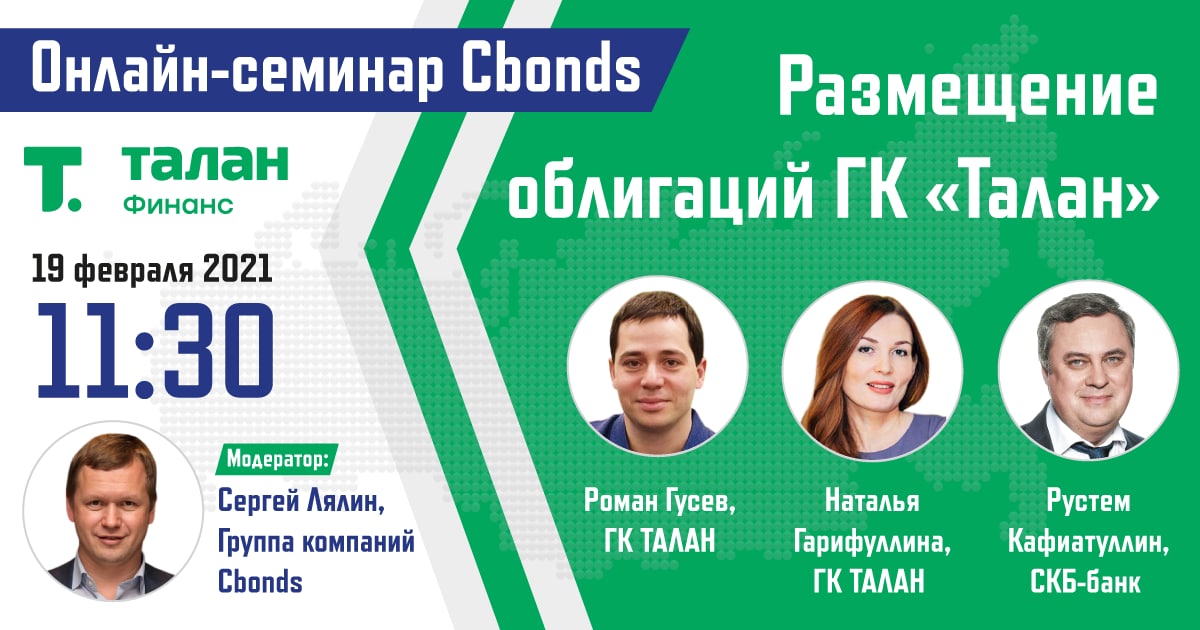 💡Уже сегодня: «Размещение облигаций ГК «Талан» – онлайн-семинар Cbonds
