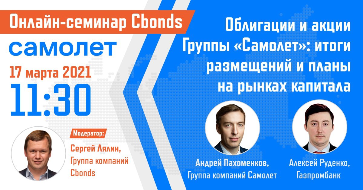 ✈️ Онлайн-семинар Cbonds «Облигации и акции Группы «Самолет»: итоги размещений и планы на рынках капитала»