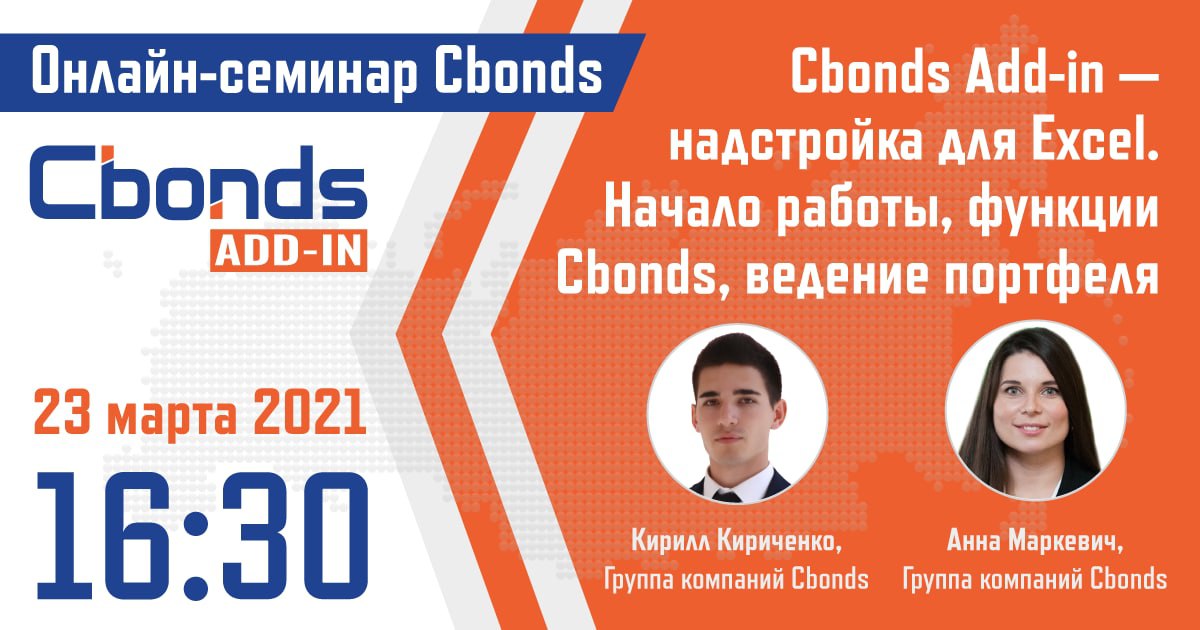 💡Онлайн-семинар «Cbonds Add-in - надстройка для Excel. Начало работы, функции Cbonds, ведение портфеля»