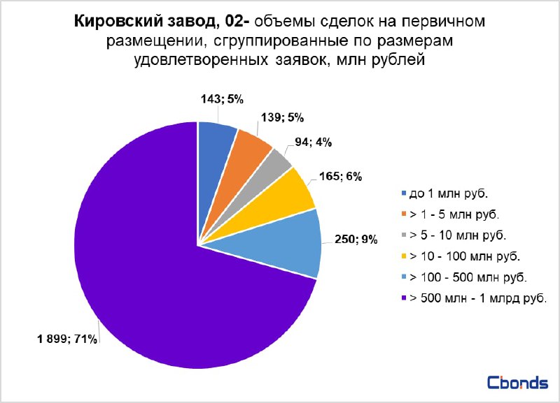 Наибольшую долю в структуре размещения (71%) заняли сделки от 500 млн до 1 млрд рублей, на втором месте идут сделки от 100 до 500 млн рублей (9%).