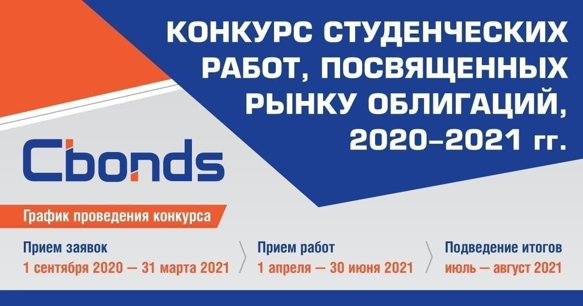 Напоминаем, что сегодня заканчивается регистрация на II студенческий конкурс Cbonds по рынку облигаций. К участию приглашаются студенты бакалавриата и магистратуры высших учебных заведений стран СНГ.