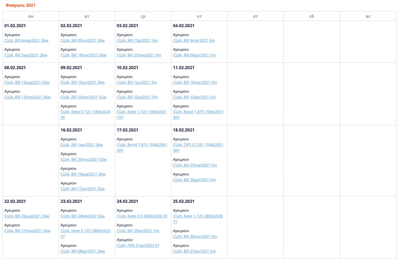 💡Аукционы по размещению государственных облигаций теперь доступны в календаре событий на сайте Cbonds