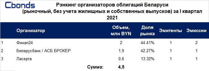 🇧🇾 🏆 Рэнкинг организаторов облигаций Республики Беларусь по итогам I квартала 2021 года