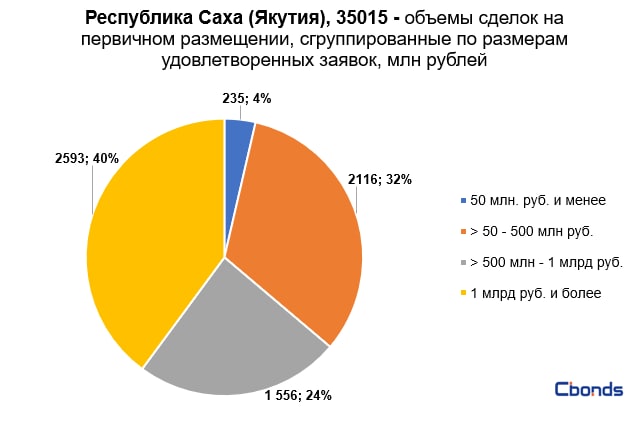 Наибольшую долю в структуре размещения (40%) заняли сделки объемом более 1 млрд рублей, на втором месте идут сделки объемом от 50 до 500 млн рублей (32%).