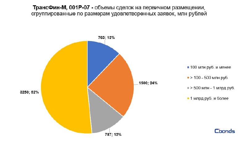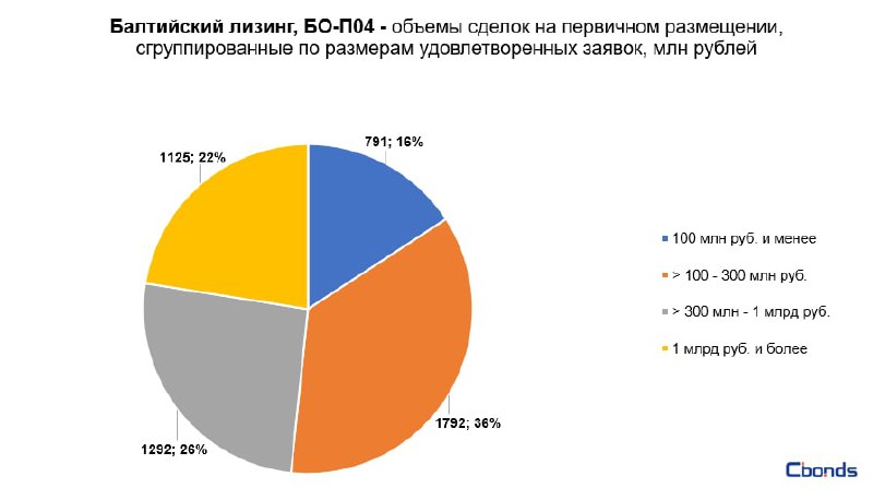 Наибольшую долю в структуре размещения (36%) заняли сделки объемом от 100 до 300 млн рублей, на втором месте идут сделки объемом от 300 млн до 1 млрд рублей (26%).