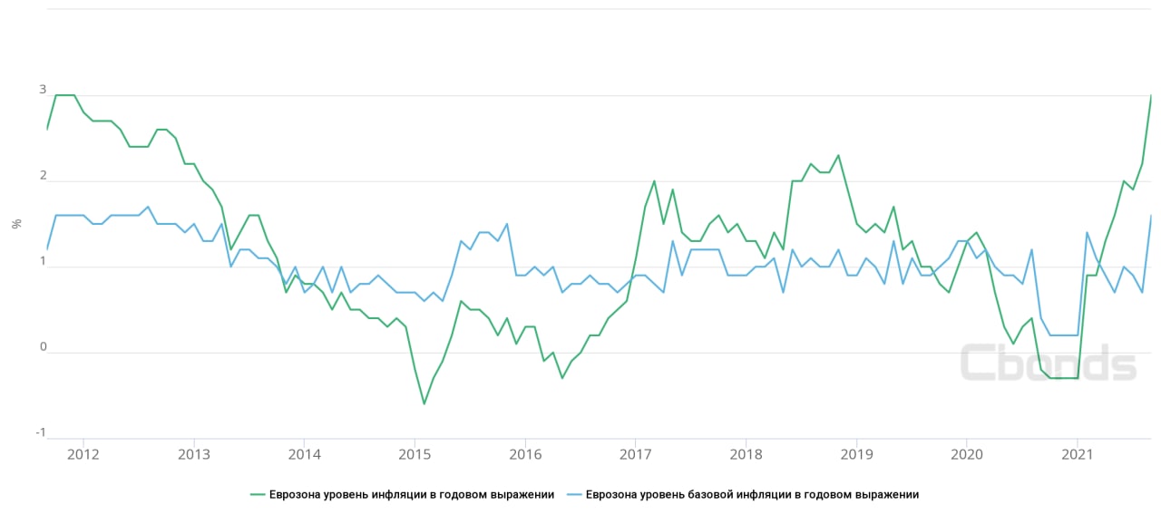 📈🇪🇺Годовая инфляция в еврозоне по итогам августа ожидаемо ускорилась до 3% – рекорд с 2011 года