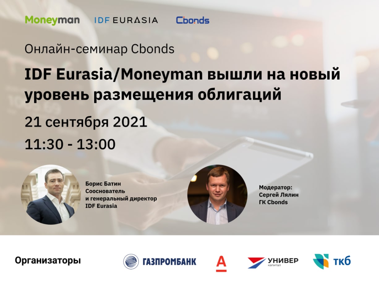 💳Онлайн-семинар «IDF Eurasia/MoneyMan: вышли на новый уровень размещения облигаций» – 21 сентября в 11:30 (мск)