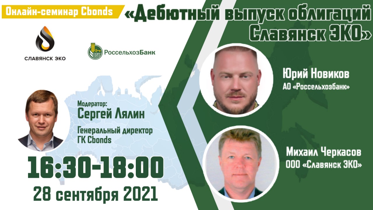 💳Онлайн-семинар «Дебютный выпуск облигаций Славянск ЭКО» – 28 сентября в 16:30 (мск)