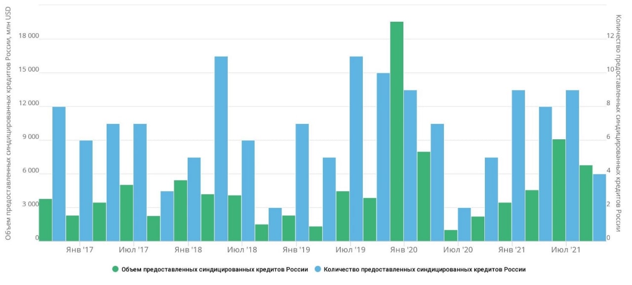 Так, используя нашу статистику, например, можно узнать, что за 9 месяцев 2021 года заемщики на рынке СНГ привлекли 29 кредитов на $21.84 млрд, что почти на 22% превысило объем заключенных сделок за весь предыдущий год, а на российском рынке – 21 кредит на $20.44 млрд. ⬇️