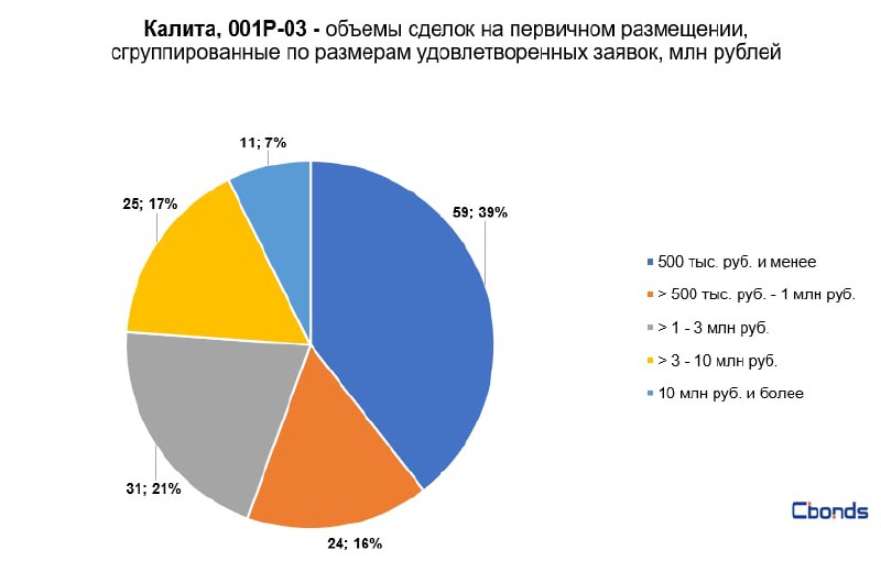 Наибольшую долю в структуре размещения (39%) заняли сделки объемом 500 тыс. рублей и менее, на втором месте идут сделки объемом от 1 до 3 млн рублей (21%).