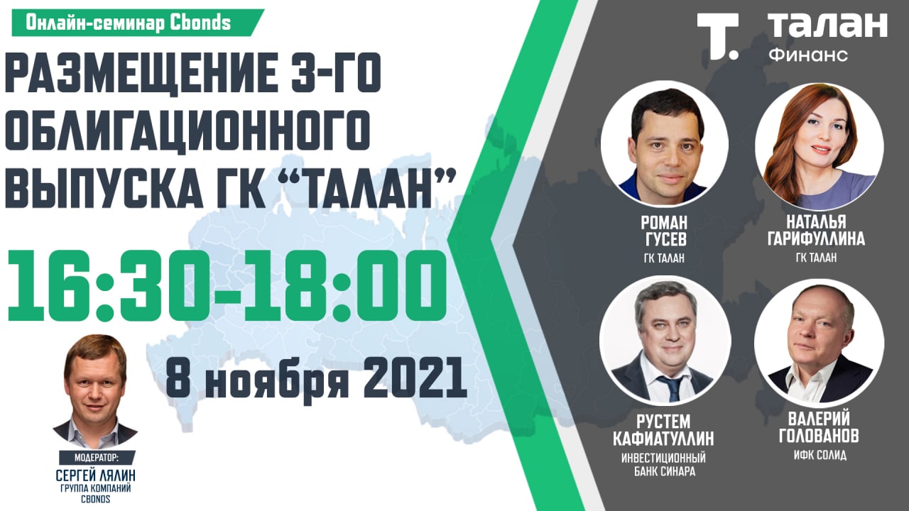 🏢Уже сегодня в 16:30 (мск): «Размещение 3-го облигационного выпуска ГК «Талан» – онлайн-семинар Cbonds
