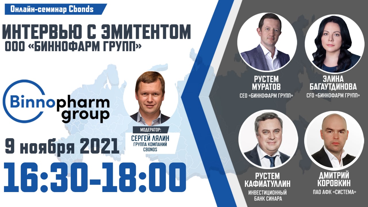 💊Онлайн-семинар «Интервью с эмитентом ООО «Биннофарм Групп» – 9 ноября в 16:30 (мск)