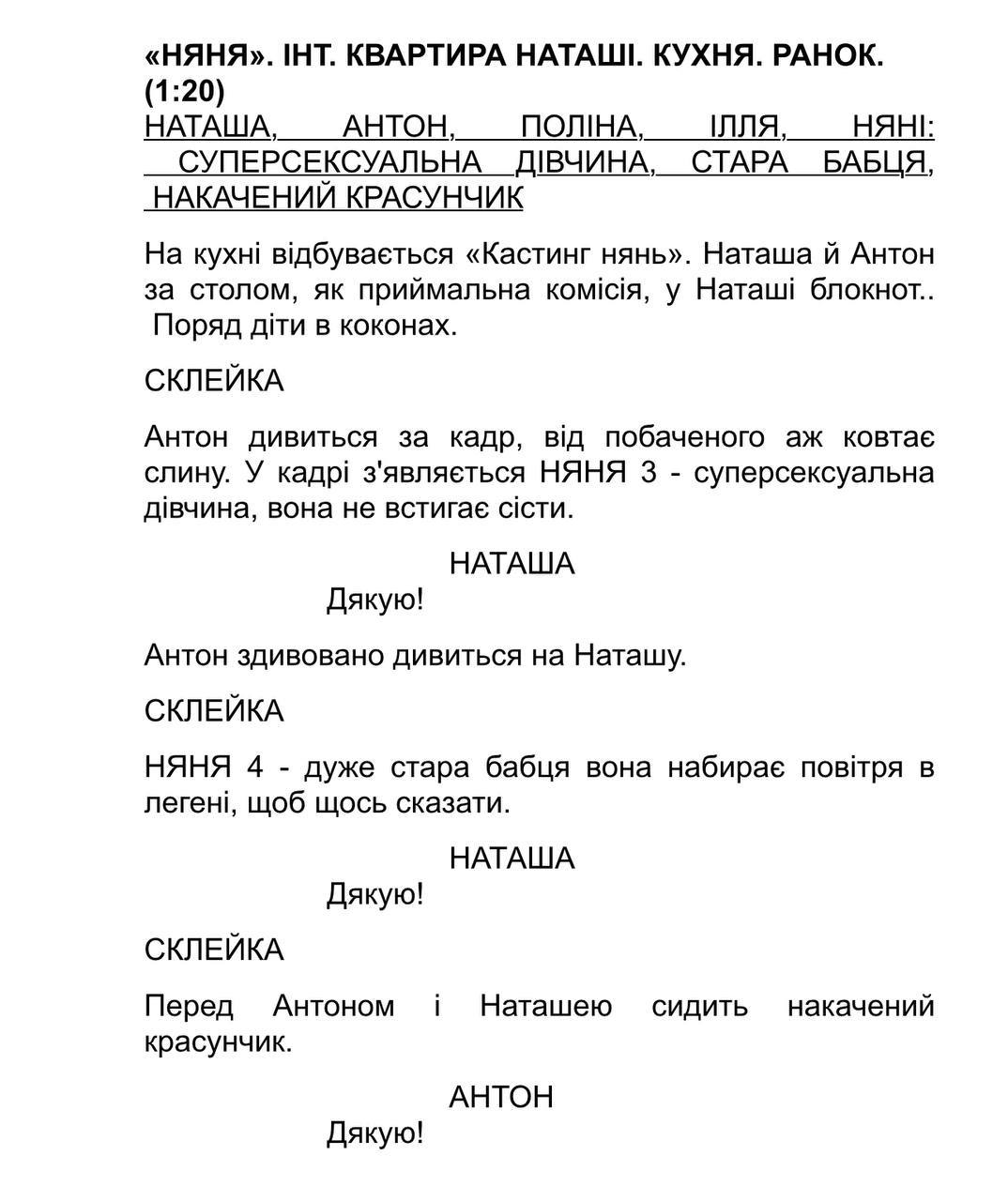 2) 🕺«накачаний красень», а саме: молодий, гарний хлопець, стрункий, підкачаний 20-25 років, приходить влаштовуватися на роботу нянею, але через ревнощі йому одразу відмовляють
