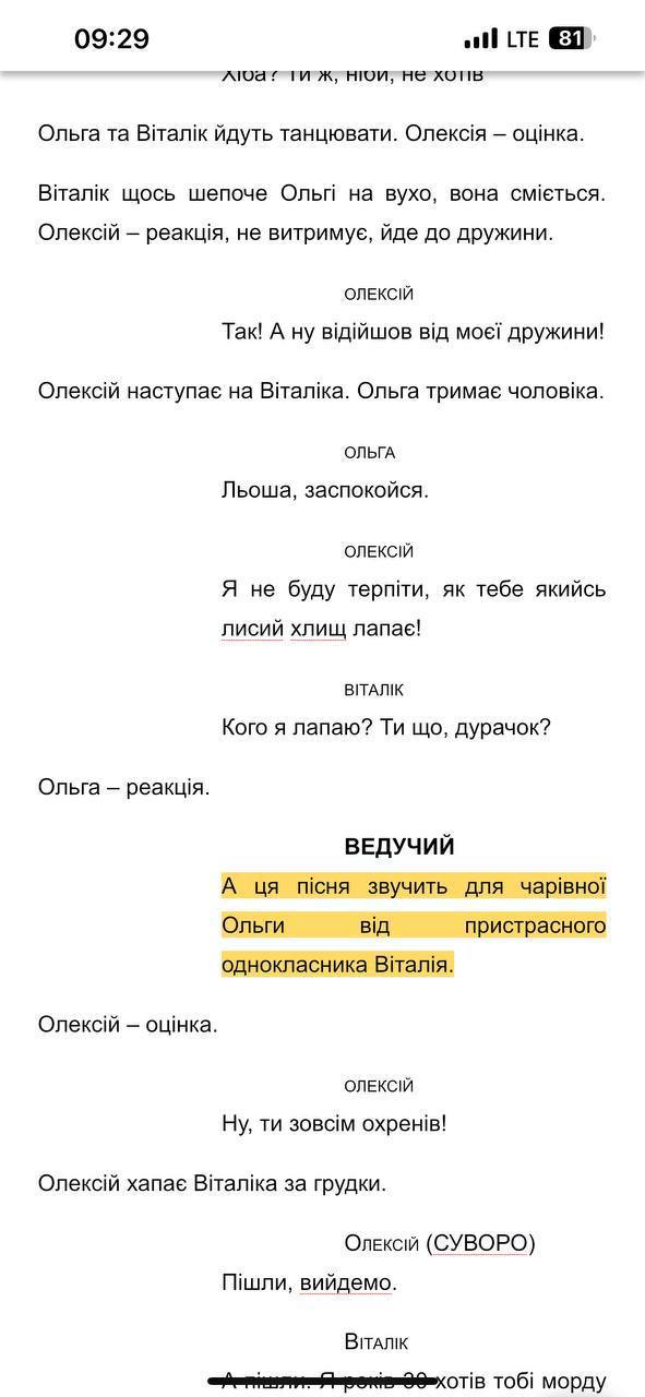 - ПРОБУ ПИШЕМО по персонажу «чоловік 3», треба відіграти на пробі як заглядаєтесь на акторку ( як прописано в сцені) і репліку