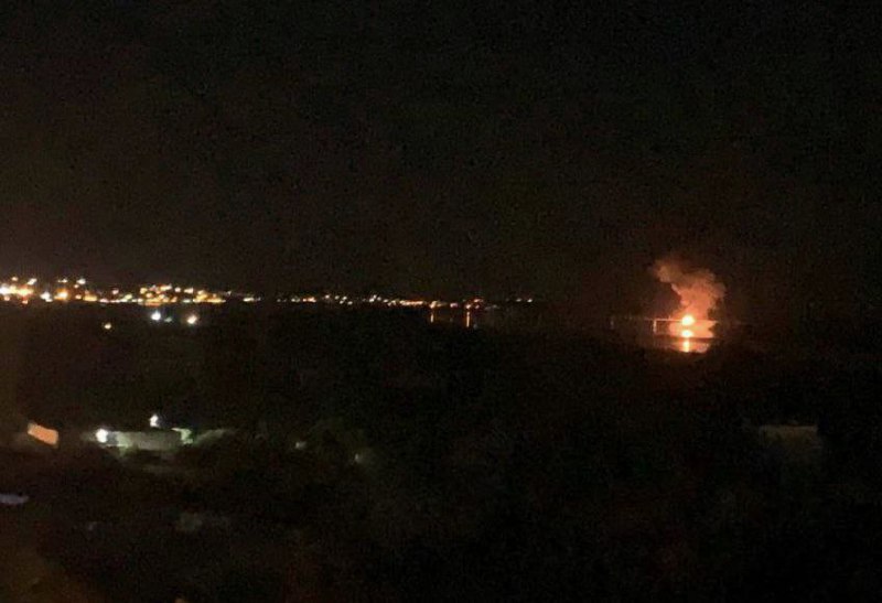 Також з'явилося фото, ймовірно, палаючого Антонівського мосту.
