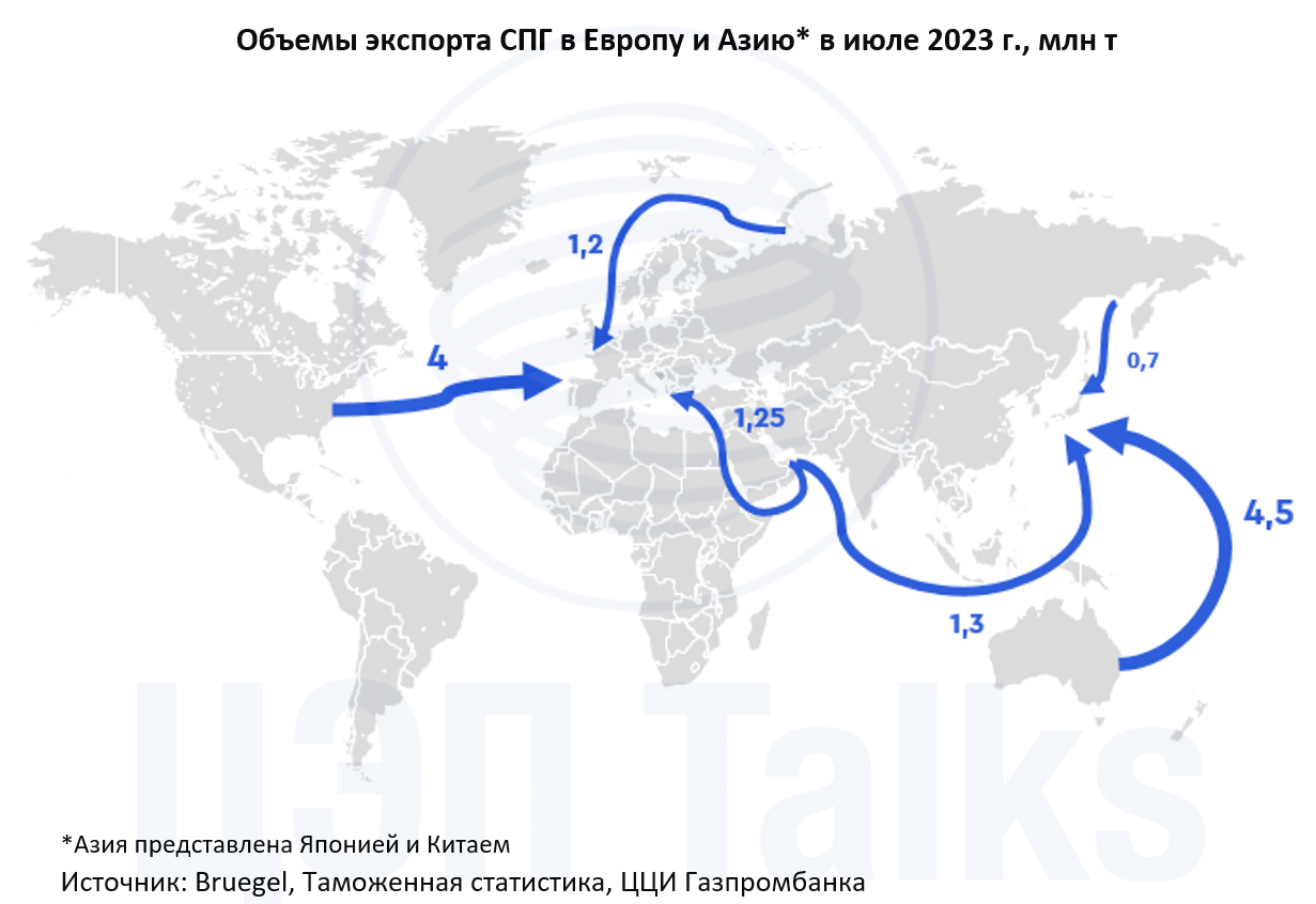 Австралия является ключевым экспортером сжиженного природного газа (СПГ) в мире, обеспечивая 20% мировых поставок. По итогам 1 пол. 2023 г. страна экспортировала около 43 млн т СПГ. Более 60% объемов экспорта СПГ направляются в Китай и Японию. Поэтому новость о возможной забастовке на 3 из 10 заводах, обеспечивающих 50% производства СПГ Австралии, стала причиной роста волатильности на рынке. Так, 16 августа спотовая цена на газ в Азии (JKM) выросла за сутки на 28% и впервые с марта 2023 г. превысила 500 долл./тыс. м3. В ответ выросли и европейские цены.