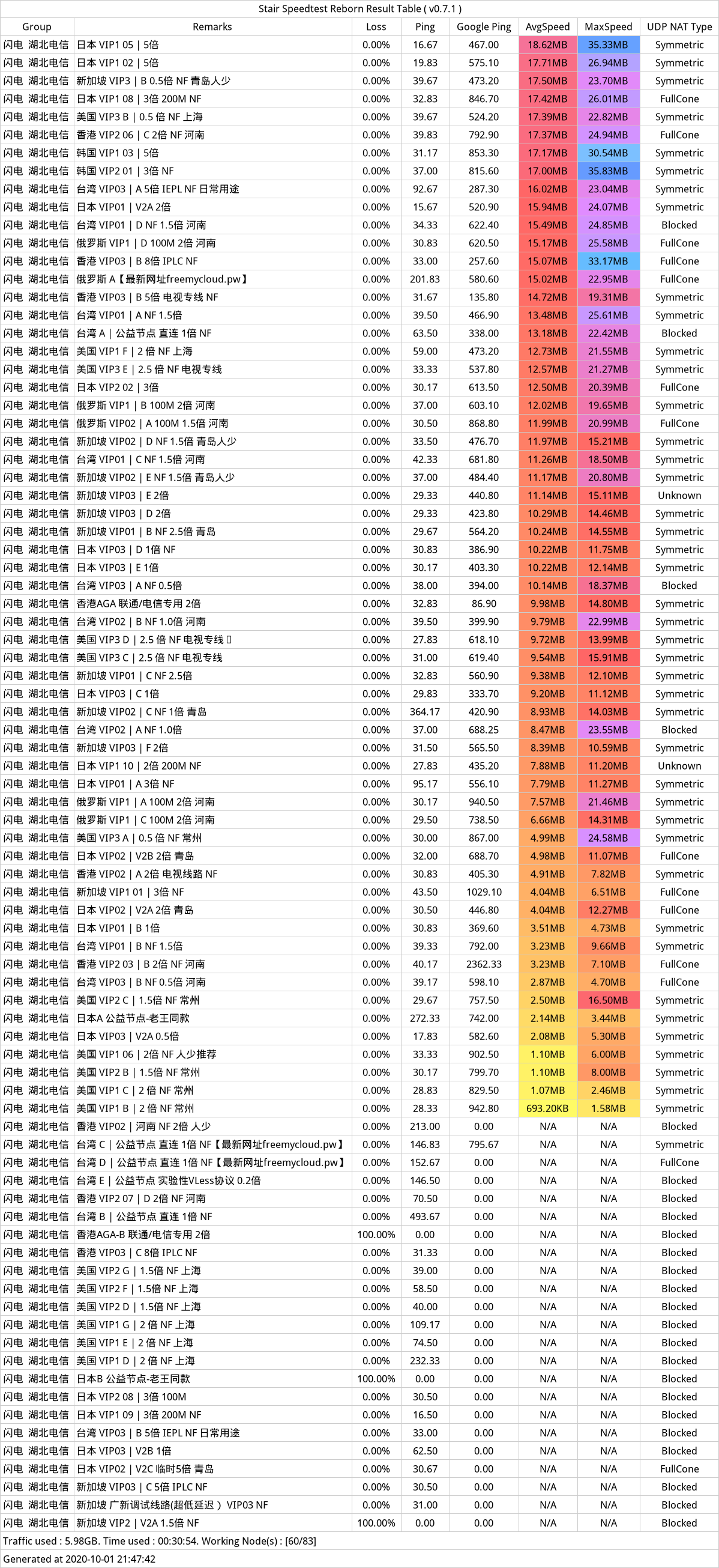 #火星联盟,晚高峰测速,测速环境:测速环境:湖北电信500mbps&广东电信500mbps,v2ray带机场,节点180+个,测速图为部分节点速度,选择节点难顶。