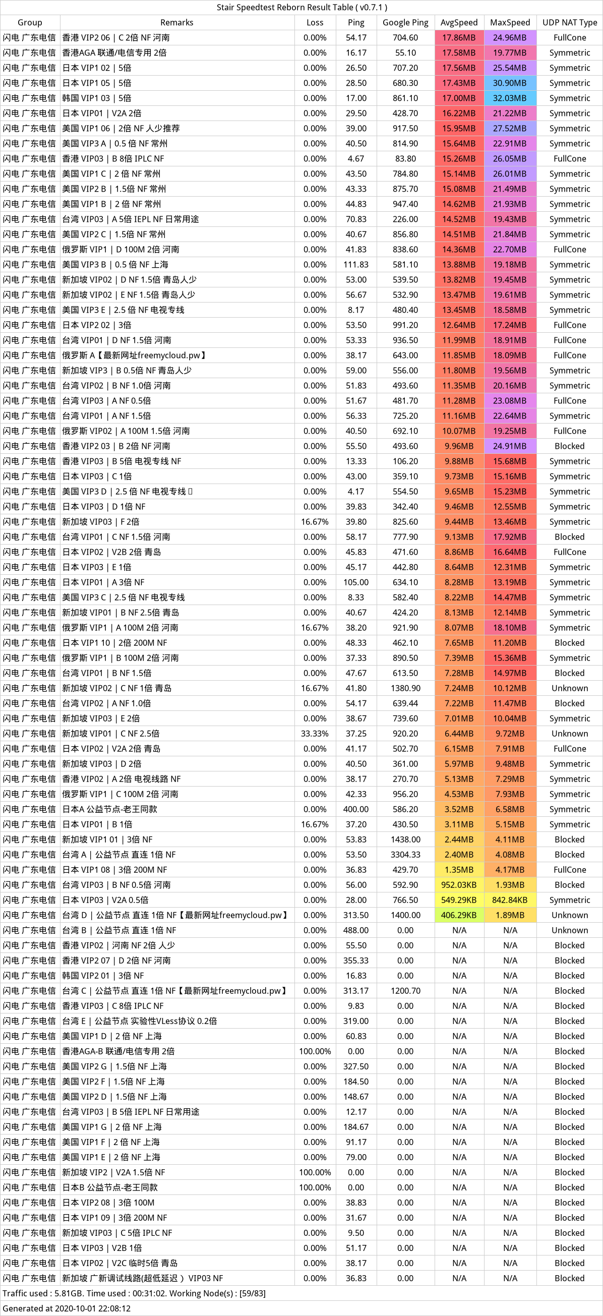 #路飞船长#ss&ssr,晚高峰测速,测速环境:山西电信500Mbps,主打专线,双线iplc,速度延迟都挺不错的。