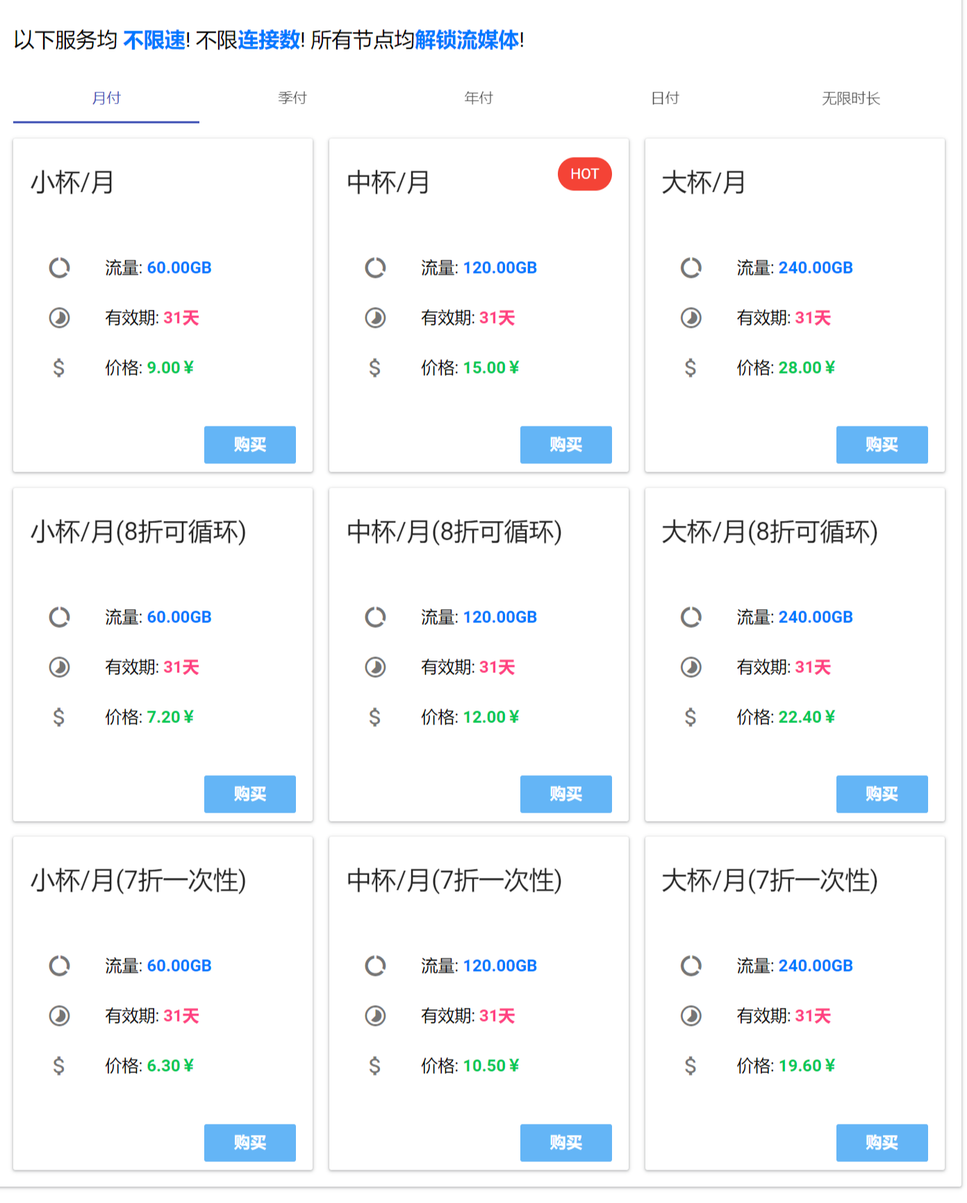 50r不限时1t套餐,不同的套餐流量与节点数量有区别
